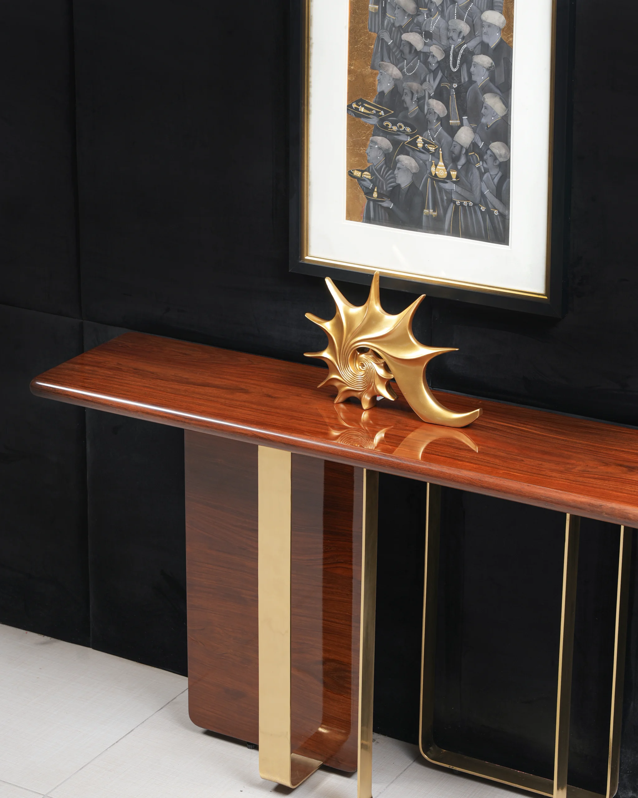 This console table is a masterpiece of design, blending form and function to create a captivating focal point in any room.