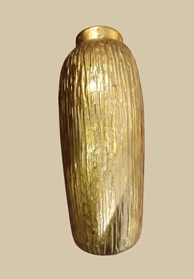 Golden Vase is a stylish decorative piece with a radiant golden finish. Its premium design adds elegance and a luxurious touch to any living space, office, or commercial interior.