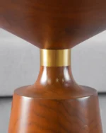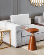 The Kawish End Table Brass Neck features a sleek tabletop paired with a striking brass neck, offering a sophisticated and contemporary accent for any living space..