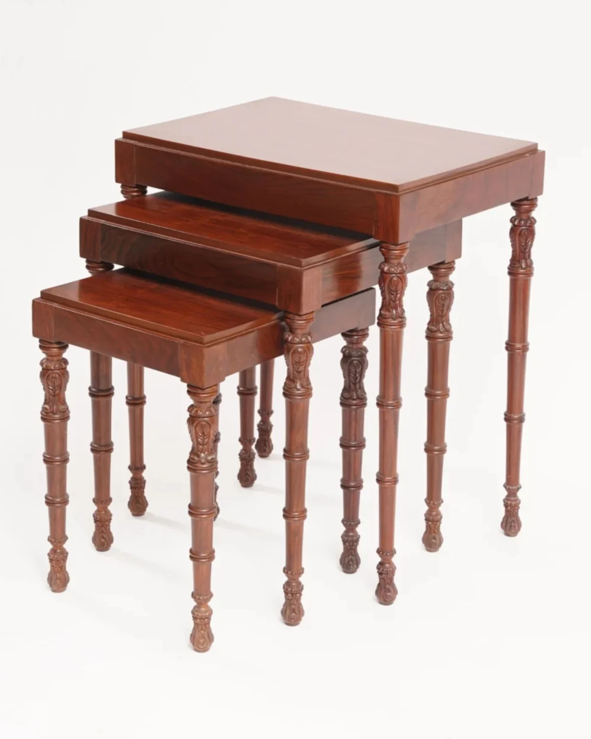Each table features beautifully hand-carved legs with intricate detailing, showcasing skilled artisanship that adds a touch of royalty to your décor.